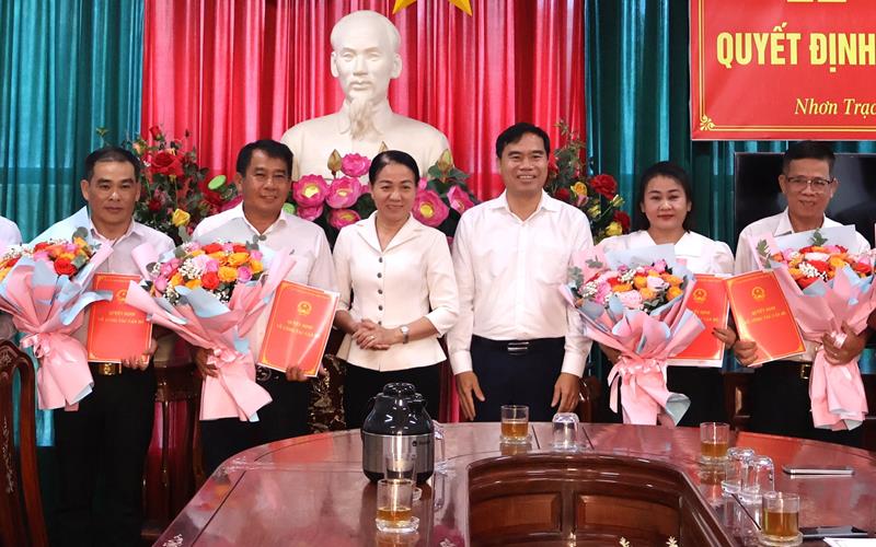 Tại buổi lễ, các đại biểu đã được nghe Phòng Nội vụ huyện công bố 8 Quyết định của Chủ tịch UBND huyện, trong đó có 2 Quyết định điều động, bổ nhiệm, 2 Quyết định phê chuẩn kết quả bầu cử và 4 Quyết định bổ nhiệm lại gồm có: Quyết định Điều động ông Trịnh Văn Thành – Hiệu trưởng Trường Tiểu học Phước An đến công tác tại Trường Tiều học Long Thọ, bổ nhiệm giữ chức vụ Hiệu trưởng nhà trường, kể từ ngày 15/10/2024. Điều động bà Nguyễn Thị Lệ Hồng - Hiệu trưởng Trường Tiểu học Long Thọ đến công tác tại trường Tiểu học Phước Lai, bổ nhiệm giữ chức vụ Hiệu trưởng nhà trường, kể từ ngày 15/10/2024. Phê chuẩn kết quả bầu Chủ tịch UBND xã Phú Hữu khóa XII, nhiệm kỳ 2021-2026 đối với ông Lương Hữu Châu - Phó Bí thư Đảng ủy xã Phú Hữu, nhiệm kỳ 2020-2025. Phê chuẩn kết quả bầu cử chức vụ Chủ tịch UBND xã Phước Khánh khóa XII, nhiệm kỳ 2021-2026, đối với ông Nguyễn Văn Luận - Phó Bí thư Đảng ủy xã Phước Khánh, nhiệm kỳ 2020-2025. Bổ nhiệm lại chức vụ Giám đốc Trung tâm Văn hóa, Thông tin và Thể thao đối với ông Vũ Văn Tân. Bổ nhiệm lại chức vụ Phó Giám đốc Trung tâm Văn hóa, Thông tin và Thể thao đối với ông Huỳnh Trung Dũng, bà Đoàn Thị Kim Ngân và ông Châu Thanh Phong, kể từ ngày 01/8/2024. Các Quyết định có thời hạn bổ nhiệm giữ chức vụ là 05 năm.