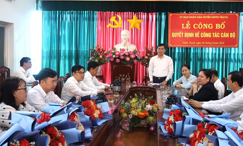 Chúc mừng các cán bộ nhận Quyết định đợt này, lãnh đạo Huyện uỷ, UBND huyện đánh giá cao những đóng góp, sự cống hiến của các đồng chí trong công việc trước đây. Đồng thời đề nghị, các đồng chí được giao giữ vị trí cao hơn cần phấn đấu nhiều hơn trong công tác, nêu cao tinh thần trách nhiệm, phát huy cao độ chức trách, nhiệm vụ được giao. Đối với cán bộ quản lý các trường được bổ nhiệm lại đã nắm vững công tác chuyên môn, tuy nhiên cần có sự sáng tạo, đổi mới cách làm nhằm nâng cao chất lượng giáo dục và đào tạo, góp phần xây dựng huyện Nhơn Trạch ngày càng phát triển xứng tầm đô thị trong tương lai.