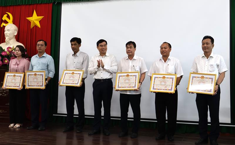 Chủ tịch UBND huyện Nguyễn Thế Phong trao giải cho 6 địa phương có phần trang trí Trụ sở đẹp, nổi bật Mừng Đảng – Mừng Xuân 2025