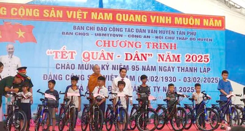 Trong không khí vui tươi ấm áp khi Tết nguyên đán Ất Tỵ năm 2025 đang đến gần, ban tổ chức đã tổ chức gói 500 chiếc bánh chưng, tổ chức các trò chơi dân gian, giao lưu văn hóa, văn nghệ, thể dục thể thao giữa cán bộ chiến sĩ, lực lượng công an nhân dân huyện với cán bộ và nhân dân xã Nam Cát Tiên. Tại chương trình còn diễn ra nhiều hoạt động thiết thực khác như: phiên chợ “0 đồng”; tặng quà cho hộ nghèo, hộ cận nghèo; gia đình chính sách, trao tặng 2 căn nhà tình thương cho hộ gia đình khó khăn về nhà ở và 20 xe đạp cho các em học sinh nghèo hiếu học… Tổng trị giá các phần quà khoảng trên 410 triệu đồng.