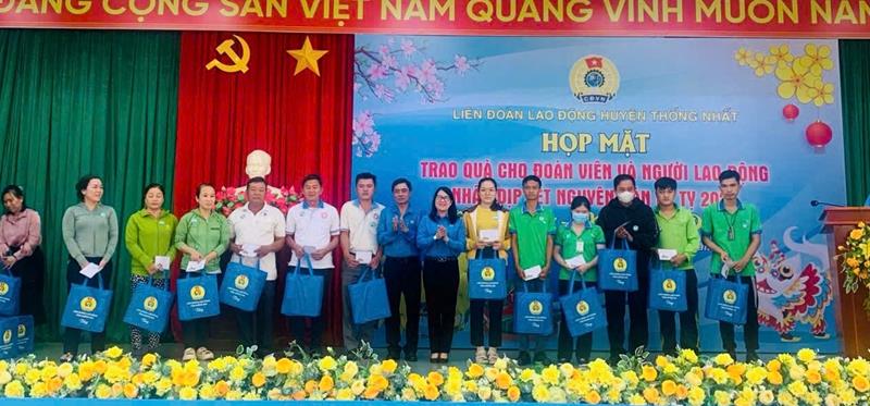 Theo LĐLĐ huyện Thống Nhất, trong dịp tết Nguyên đán năm nay, LĐLĐ huyện đã chăm lo, hỗ trợ quà cho trên 1 ngàn đoàn viên, NLĐ có hoàn cảnh khó khăn thuộc 162 Công đoàn cơ sở và doanh nghiệp trên địa bàn huyện. Hiện toàn huyện Thống Nhất có hơn 9,5 ngàn đoàn viên đang làm việc trong các cơ quan, đơn vị, doanh nghiệp. Thời gian qua tình hình lao động việc làm, chế độ lương thưởng cho NLĐ được doanh nghiệp đảm bảo.