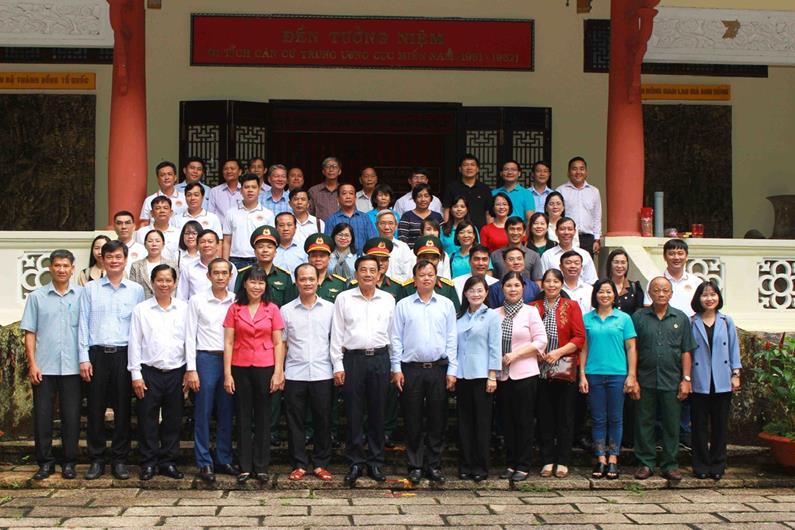Đoàn công tác của Ban Dân vận Tỉnh ủy chụp hình lưu niệm tại Khu Di tích Căn cứ Trung ương Cục miền Nam (huyện Vĩnh Cửu)