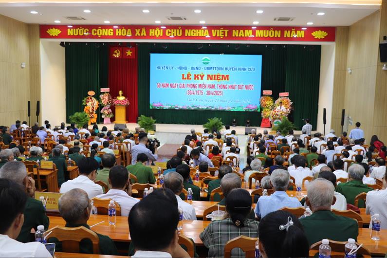 Quang cảnh Lễ kỷ niệm 50 năm Ngày giải phóng miền Nam, thống nhất đất nước do Huyện ủy – HĐND – UBND – Ủy ban MTTQ Việt Nam huyện Vĩnh cửu tổ chức.