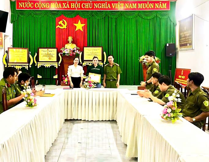 Lãnh đạo UBND xã và Công an xã Bình Lợi khen thưởng chị Nguyễn Thị Ngọc Ánh