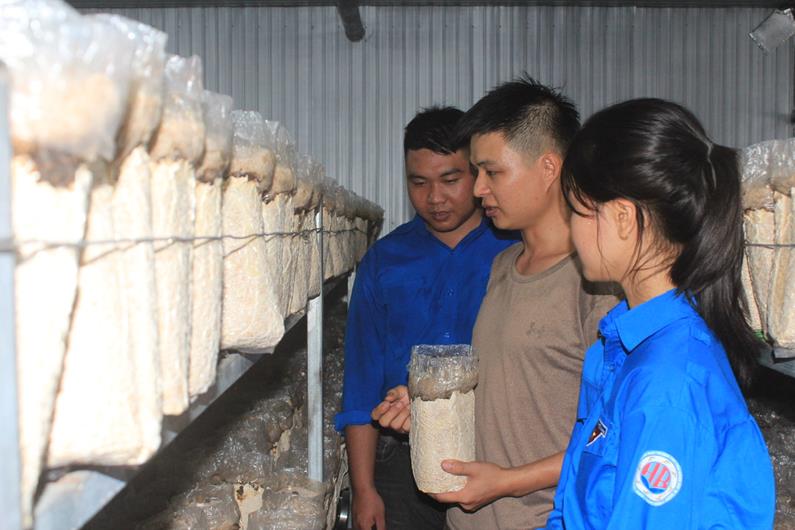 Đoàn viên thanh niên xã Xuân Đông, H.Cẩm Mỹ tham quan mô hình trồng nấm mối đen
