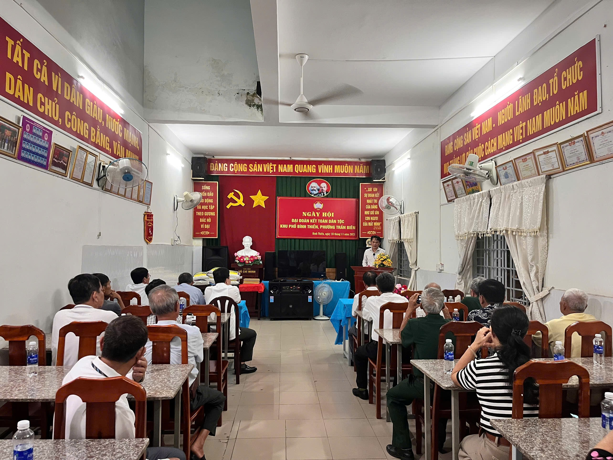 Tham dự có các đồng chí Nguyễn Văn Hoàng, Phó Chủ tịch UBND phường Trấn Biên; Lương Văn Trường, Bí thư Chi bộ, Trưởng Khu phố Bình Thiền; Nguyễn Mộng Điệp, Phó Bí thư Chi bộ khu phố, cùng các ban, ngành đoàn thể khu phố và gần 200 hộ dân tiêu biểu đại diện cho các hộ dân cư trong khu phố.