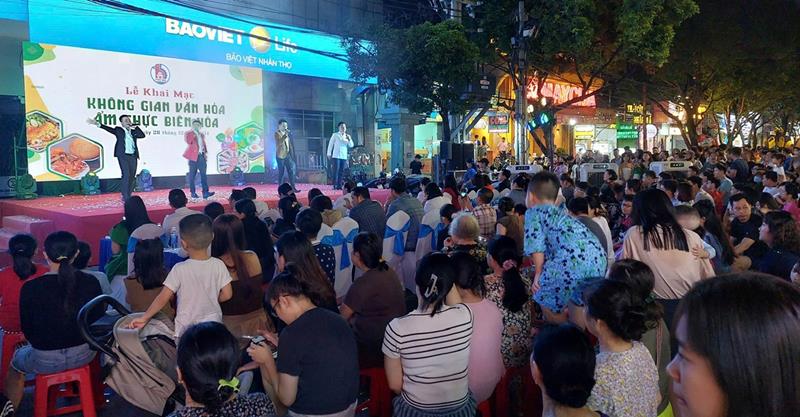 Người dân và du khách xem biểu diễn văn nghệ tại Không gian văn hóa ẩm thực thành phố Biên Hòa năm 2024