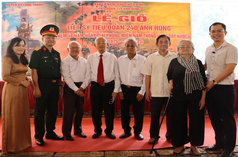 Các đại biểu dự lễ giỗ liệt sĩ Tiểu đoàn 240 tại Căn cứ U3 nhân kỷ niệm 48 năm giải phóng miền Nam