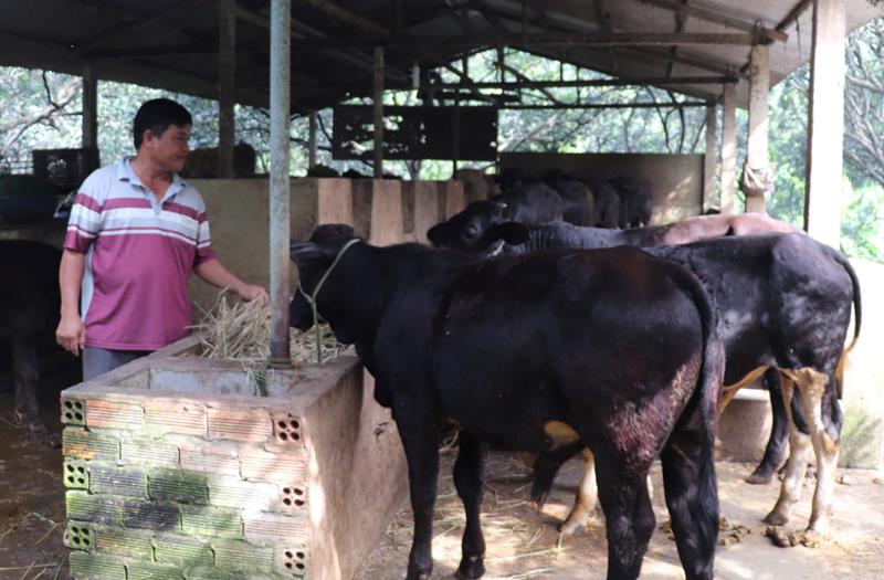Ngoài trồng bưởi, ông Trung còn mở trang trại nuôi bò thịt nhằm tăng thu nhập cho gia đình