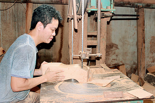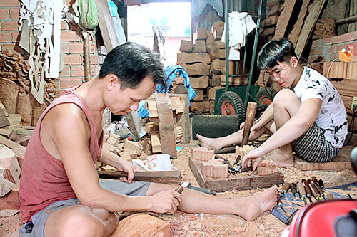 Ghé thăm cơ sở sản xuất mộc Hoàng Anh Đức, đường Điểu Xiển, phường Tân Biên chúng tôi lạc vào không khí lao động hăng say của những người thợ. Chủ cơ sở chia sẻ, trong xưởng có 20 thợ, từ tháng 9 phải thêm 10 thợ nữa. Từ cắt gỗ, tạo hình, chạm khắc, chà nhám, đến lắp ráp, phun sơn đều do những người thợ ở đây làm. Tùy theo tay nghề và sức khỏe, người làm tự lựa chọn công việc, lựa chọn hình thức trả lương theo sản phẩm hay theo ngày. Trung bình công cắt, chà, sơn khoảng 350.000 - 450.000 đồng/ngày, riêng công chạm, công đục tối thiểu 500.000 đồng/ngày.