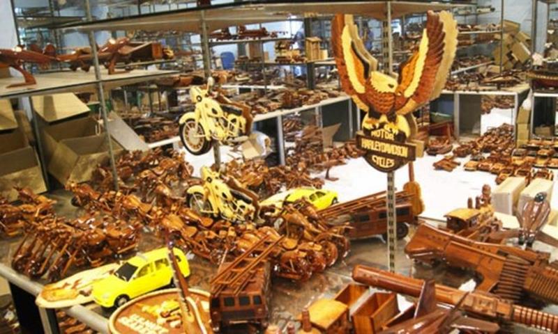 Các mô hình làm từ gỗ phế phẩm, qua bàn tay nghệ nhân trở nên tinh xảo, phong phú về sản phẩm.