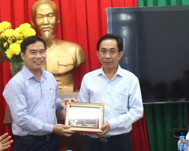 Chủ tịch UBND huyện Nguyễn Thế Phong tặng quà cho Phòng tài chính – Kế hoạch huyện dịp đầu xuân