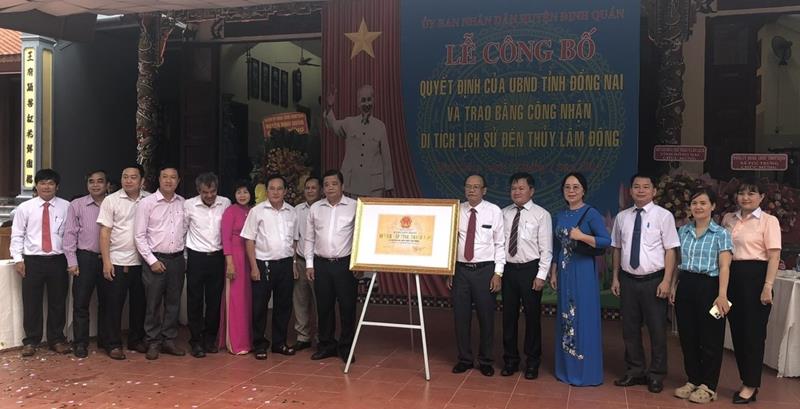 Ngày 6-5-2024, UBND tỉnh đã ban hành Quyết định số 1276/QĐ-UBND về xếp hạng di tích lịch sử đền Thủy Lâm Động, huyện Định Quán.