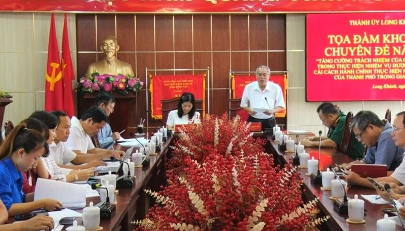 (CTT-Đồng Nai) - Thành ủy Long Khánh vừa tổ chức Tọa đàm khoa học chuyên đề năm 2023 “Tăng cường trách nhiệm của cán bộ, đảng viên trong thực hiện nhiệm vụ được giao, đẩy mạnh cải cách hành chính (CCHC) thực hiện nhiệm vụ chính trị của thành phố trong giai đoạn tới”.