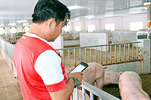 Khởi nghiệp nông nghiệp công nghệ cao cần được phát huy ở Long Thành cũng như Đồng Nai. Trong ảnh: Anh Nguyễn Tấn Hậu, xã Tân Hiệp, huyện Long Thành áp dụng công nghệ cao vào nuôi heo, quản lý heo qua điện thoại, máy tính.