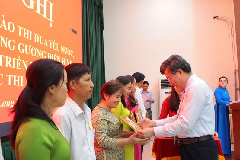 Bí thư Huyện ủy Long Thành Dương Minh Dũng trao khen thưởng cho các tập thể, cá nhân đạt thành tích xuất sắc trong phong trào thi đua yêu nước trên địa bàn