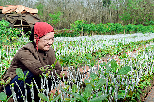 Thấy nghề ươm cây giống làm ăn hiệu quả, bà Phương tiếp tục thuê đất đầu tư mở rộng mô hình. Hiện tại, vườn ươm với tổng diện tích 8 sào của bà có trên 150.000 bầu ươm giống cây điều và gần 100.000 bầu ươm giống cây cao su. Một mình làm không hết việc nên bà thuê từ 3 - 4 người dân địa phương cùng làm với mức tiền công 200.000 đồng/ngày/người.