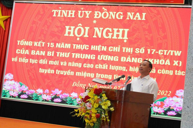 Phó Bí thư thường trực Huyện ủy Thống Nhất Nguyễn Huy Du chia sẻ kinh nghiệm về việc thực hiện công tác tuyên truyền miệng trong đồng bào công giáo