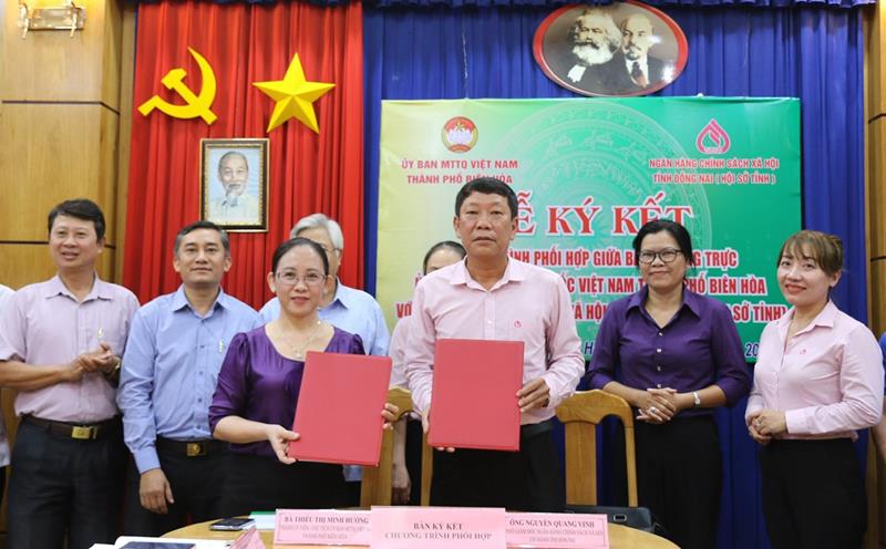 Đại diện Ủy ban MTTQ Việt Nam TP.Biên Hòa và Ngân hàng Chính sách xã hội chi nhánh tỉnh ký kết phối hợp triển khai tín dụng chính sách