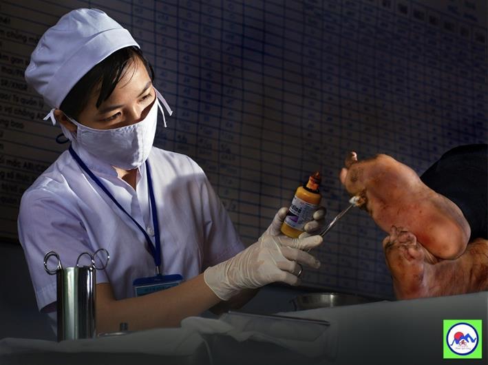 Tác phẩm “Chăm sóc lỗ đáo cho bệnh nhân phong” của nhiếp ảnh gia Phạm Quốc Hưng