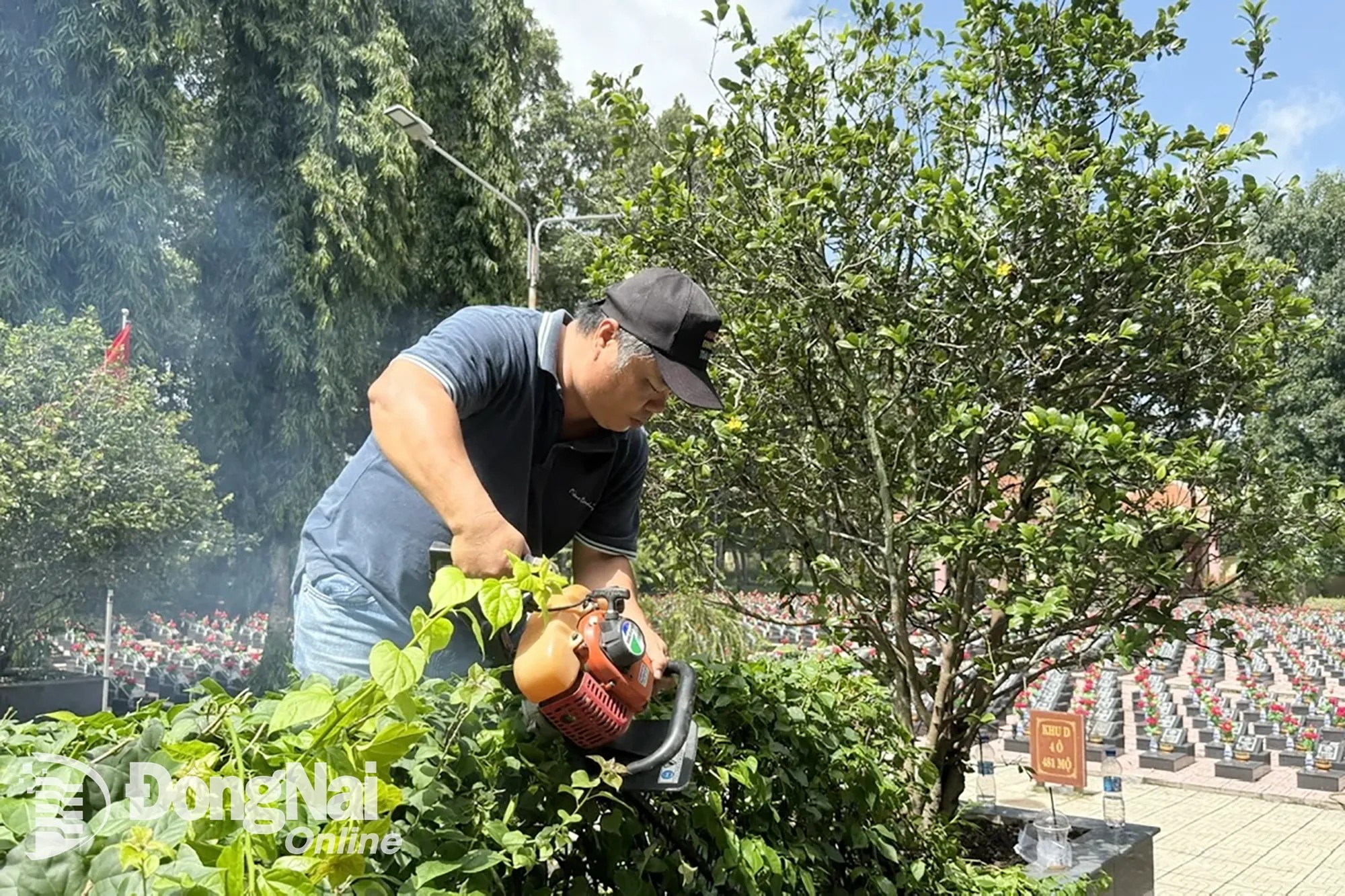 Góp phần tạo nên sự trang nghiêm ấy là công lao thầm lặng của anh Nguyễn Văn Nhật, người gắn bó với công việc quản trang tại đây suốt nhiều năm.