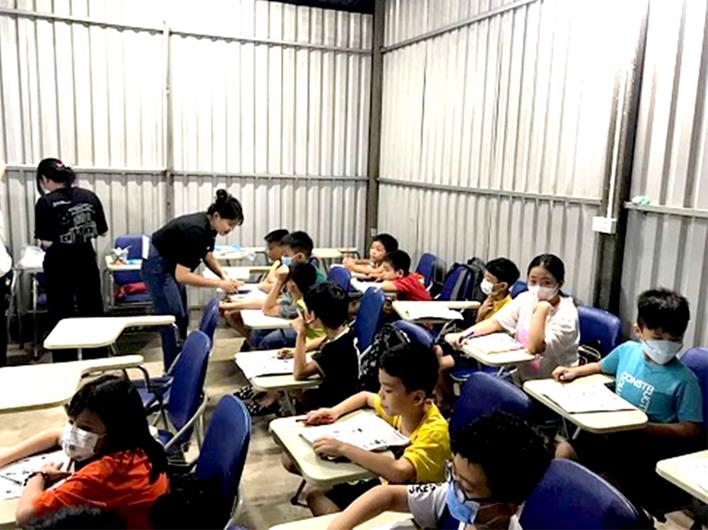 Các em học sinh tham gia lớp học tình thương do bà Hiền mở