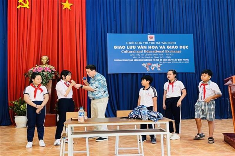 Giao lưu Văn hóa và giáo dục giữa thầy Lan Gregg Gardiner (tình nguyện viên của mạng lưới Ngôi nhà trí Việt Nam) với học sinh tại Ngôi nhà trí tuệ xã Tân Bình, H.Vĩnh Cửu
