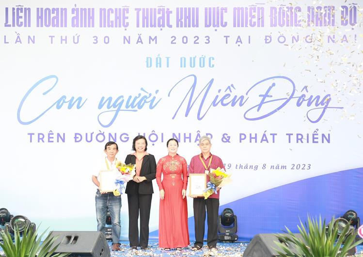 Nhiếp ảnh gia Vũ Tiến Chương (ngoài cùng bên phải) đạt huy chương bạc Liên hoan ảnh nghệ thuật khu vực miền Đông Nam bộ lần thứ 30 năm 2023 với tác phẩm “Thi công đường cao tốc”