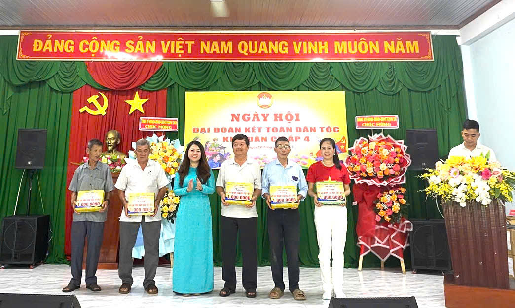 Nhân dập này, Tỉnh ủy- HĐND-UBND-Ủy ban MTTQ Việt Nam Tỉnh đã tặng quà cho khu dân cư tiêu biểu ấp 4 với số tiền 10 triệu đồng và 5 hộ gia đình điển hình tiêu biểu, mỗi hộ gia đình 1 triệu đồng.