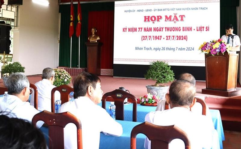 (CTT- Đồng Nai) - Bí thư Huyện ủy Nhơn Trạch Lê Thành Mỹ vừa chủ trì buổi họp mặt kỷ niệm 77 năm Ngày Thương binh liệt sĩ (27-7-1947 - 27-7-2024).