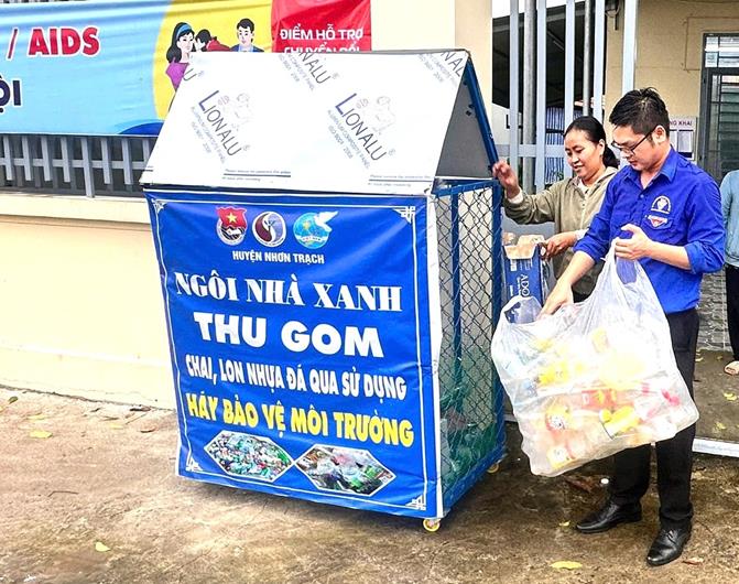 Bên cạnh đó, Đoàn thanh niên cũng phối hợp với Hội LHPN huyện và Phòng Tài nguyên - Môi trường triển khai mô hình “Ngôi nhà xanh” tặng cho khu dân cư các ấp. Những “Ngôi nhà xanh” có tác dụng là nơi tập kết các loại rác thải như: vỏ lon, vỏ chai nhựa,… “Ngôi nhà xanh” được thiết kế bằng khung thép chắc chắn, có khóa, bọc lưới sắt xung quanh và được đặt tại các địa điểm thuận tiện trong khu dân cư. Thông qua mô hình này, nhằm tuyên truyền, vận động sâu rộng trong cán bộ, đoàn viên, hội viên và nhân dân chung tay phòng, chống rác thải nhựa, bảo vệ môi trường. Đến nay đã có 8/12 xã thực hiện mô hình "Ngôi nhà xanh".