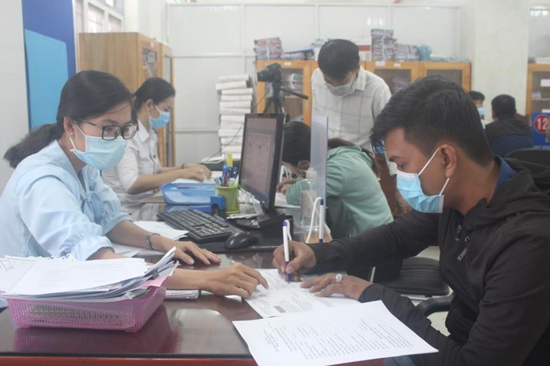 Cán bộ, công chức Bộ phận một cửa huyện Nhơn Trạch đang giải quyết thủ tục hành chính cho người dân