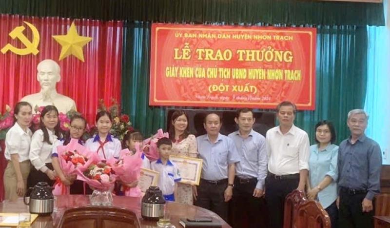 Tại buổi lễ, đại diện Phòng Nội vụ đã thông qua Quyết định khen thưởng của Chủ tịch UBND huyện cho 4 học sinh, trong đó có 2 học sinh Trường Tiểu học Hiệp Phước là em: Phan Bảo Thy, em Nguyễn Bảo Minh, 2 học sinh Trường THCS Hiệp Phước là em Trương Huỳnh An An và em Nguyễn Khánh Băng cùng cô Nguyễn Thị Ngọc Nữ - giáo viên Trường THCS Phước Thiền. Trước đó, tại vòng chung kết Cuộc thi RoboG Đồng Nai, 2 nhóm học sinh của Trường Tiểu học và THCS Hiệp Phước dưới sự dẫn dắt của cô Nguyễn Thị Ngọc Nữ đã xuất sắc đạt được giải Ba và giải Khuyến khích tại cuộc thi.