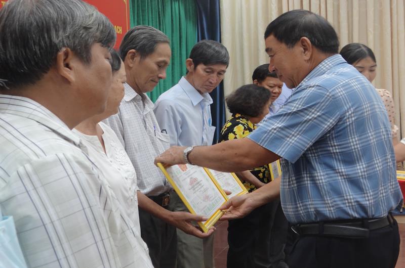 Phó Bí thư Thường trực Huyện uỷ Nhơn Trạch Nguyễn Hữu Nghị trao giấy khen cho các cá nhân đạt thành tích xuất sắc trong công tác mặt trận năm 2022