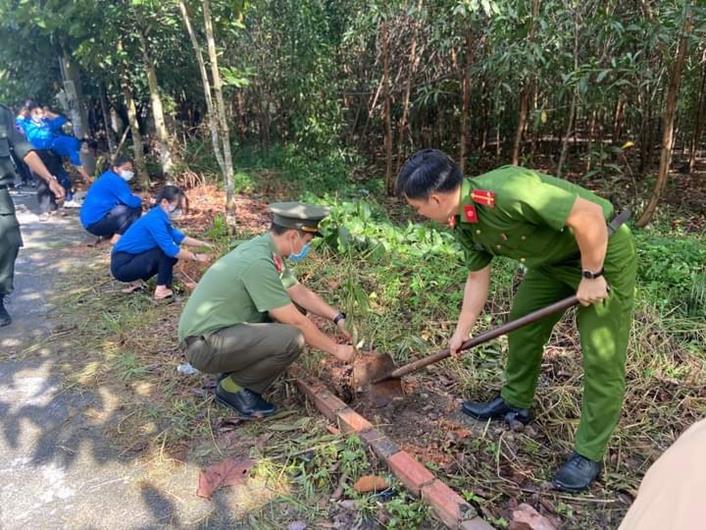 Lực lượng công an trẻ của huyện tham gia dọn dẹp vệ sinh môi trường