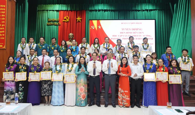 Dịp này, huyện Nhơn Trạch cũng đã tuyên dương, khen thưởng 15 tập thể và 24 cá nhân tiêu biểu đạt thành tích xuất sắc qua 10 năm thực hiện Chỉ thị 05 của Bộ Chính trị “Về đẩy mạnh học tập và làm theo tư tưởng, đạo đức, phong cách Hồ Chí Minh”.