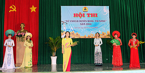 Các thí sinh tham gia hội thi “Nữ công nhân viên chức lao động duyên dáng, tài năng”.