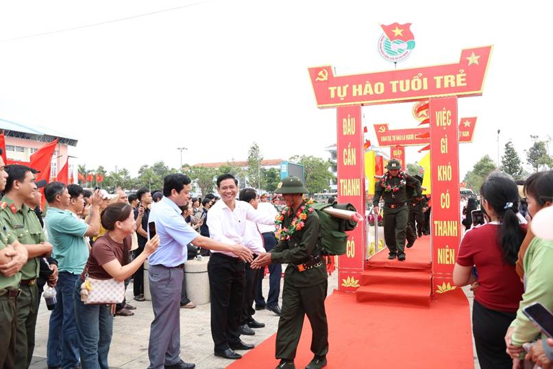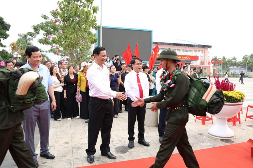 Tham dự buổi lễ có các đồng chí lãnh đạo tỉnh, lãnh đạo các địa phương, đại diện các sở, ban, ngành, đoàn thể cùng đông đảo thân nhân gia đình tân binh đến động viên, tiễn thanh niên lên đường nhập ngũ.