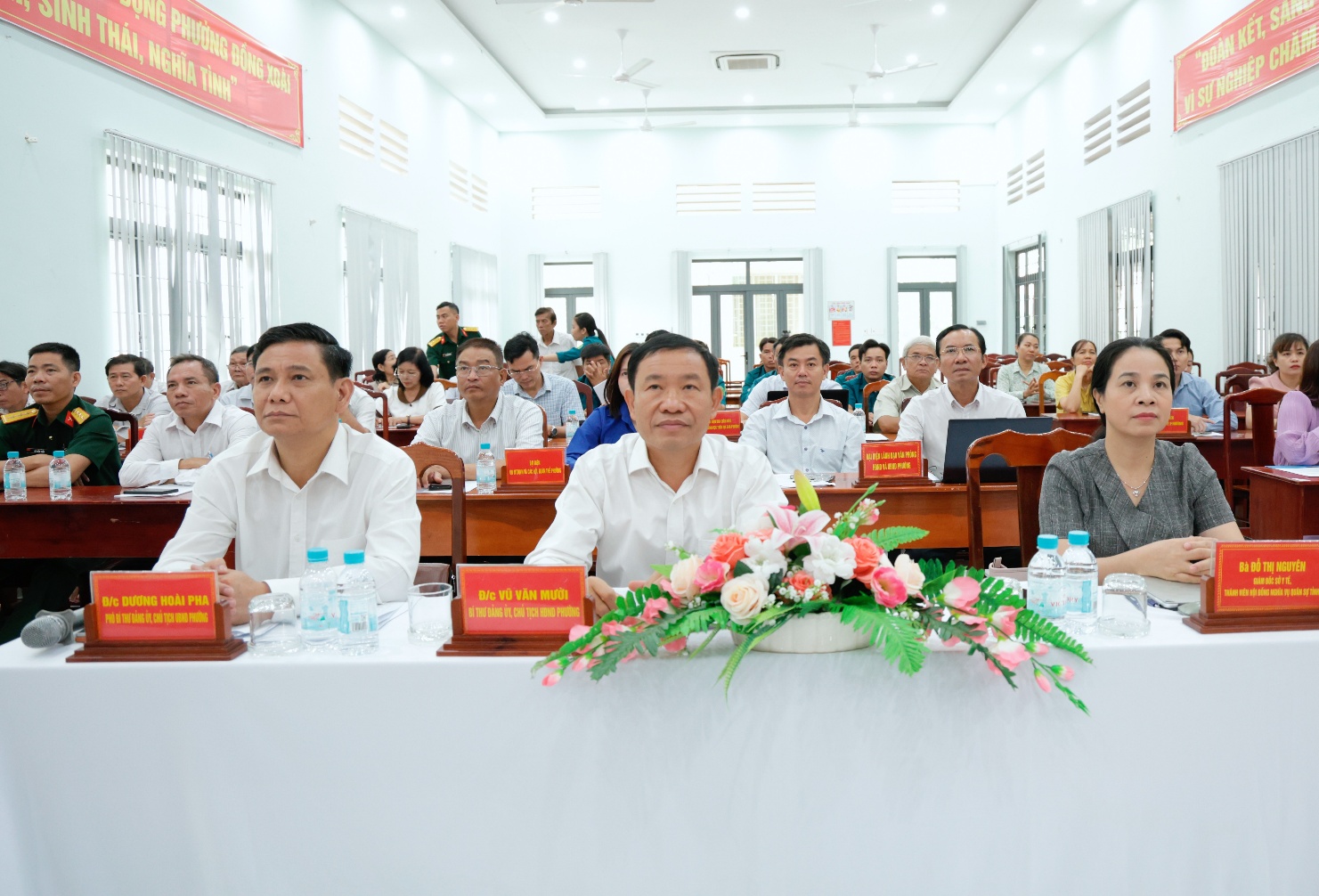 Tham dự hội nghị có bà Đỗ Thị Nguyên - Giám đốc Sở Y tế, thành viên Hội đồng Nghĩa vụ quân sự tỉnh phụ trách địa bàn phường; ông Vũ Văn Mười, Bí thư Đảng ủy, Chủ tịch HĐND phường; ông Dương Hoài Pha, Phó Bí thư Đảng ủy, Chủ tịch UBND phường, Chủ tịch Hội đồng Nghĩa vụ quân sự phường; cùng các thành viên Hội đồng Nghĩa vụ quân sự phường, lãnh đạo các ban, ngành, đoàn thể và đại diện các khu phố.