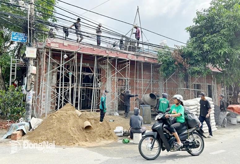 Một công trình xây dựng không có giấy phép được Tổ kiểm tra của phường Trấn Biên phát hiện vào sáng 5-7. Ảnh: Biên Hùng