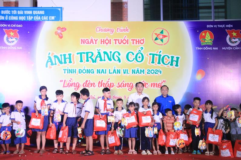 Dịp này, Ban Tổ chức đã trao tặng 500 phần quà trung thu cho thiếu nhi có hoàn cảnh khó khăn trên địa bàn huyện Cẩm Mỹ. Đồng thời, các em thiếu nhi còn được xem biểu diễn văn nghệ, múa trống, lân, rồng…
