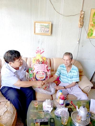 Lãnh đạo Phòng LĐTB-XH huyện Tân Phú tặng quà cho gia đình chính sách trên địa bàn