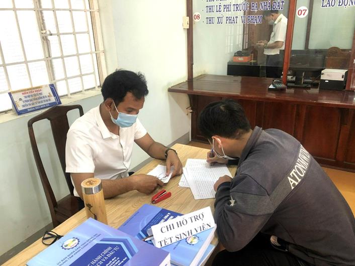 Cán bộ Phòng dân tộc huyện Tân Phú chi hỗ trợ tiền cho học sinh, sinh viên dân tộc thiểu số trên địa bàn