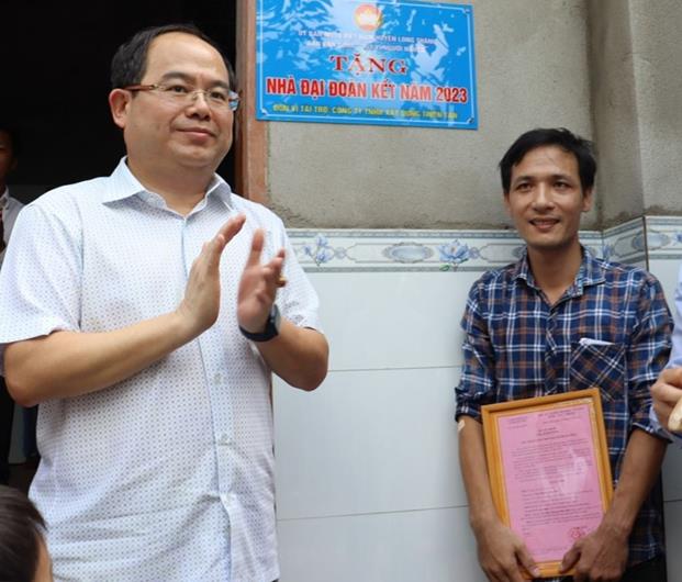 Phó Bí thư Tỉnh ủy Quản Minh Cường bàn giao nhà cho ông Diện