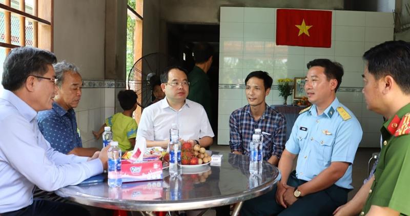 Phó Bí thư Tỉnh ủy Quản Minh Cường động viên chúc mừng gia đình ông Phương Hữu Diện có nhà mới