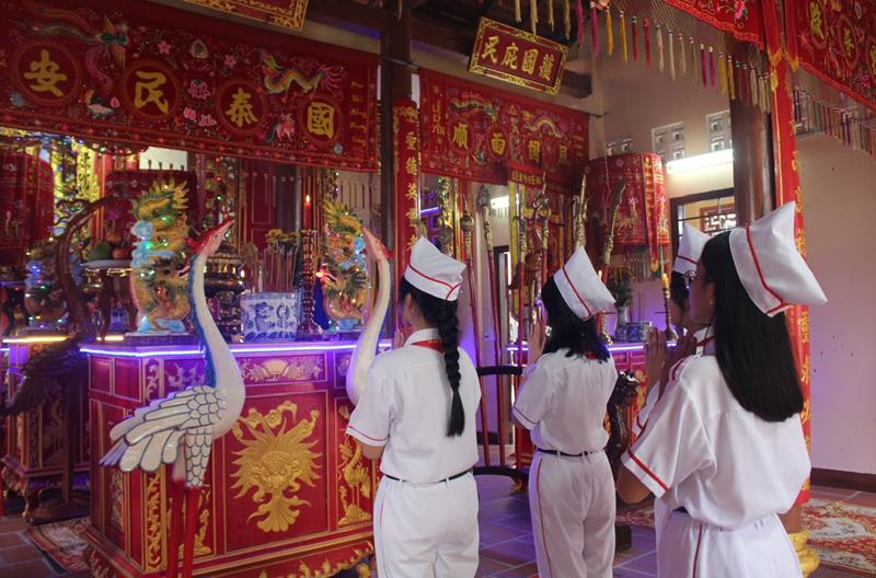 Các em học sinh dâng hương tại di tích khảo cổ học Tân Lại