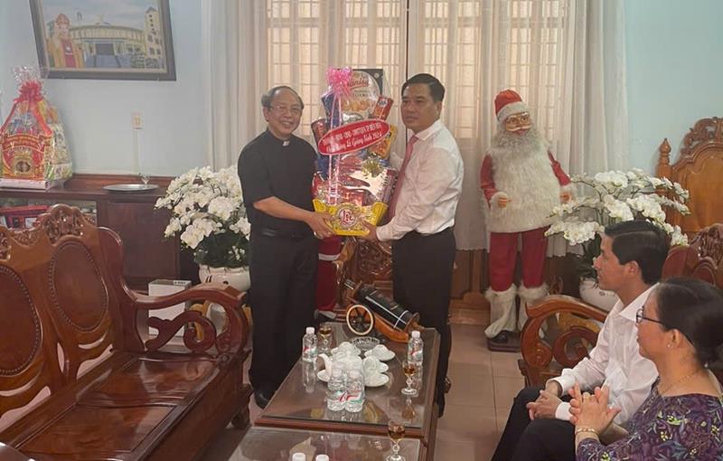 Bí thư Thành ủy Biên Hòa Hồ Văn Nam tặng quà cho các linh mục.