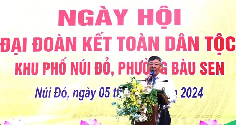 Phó Bí thư thường trực Tỉnh ủy Hồ Thanh Sơn ghi nhận, biểu dương kết quả đạt được của Chi bộ, Ban Khu phố và toàn dân khu phố Núi Đỏ đạt được năm 2024. Phó Bí thư thường trực Tỉnh ủy đề nghị, Chi bộ, khu phố tiếp tục phát huy truyền thống đại đoàn kết toàn dân tộc, vận động nhân dân tích cực tham gia các phong trào thi đua yêu nước xây dựng khu phố văn hóa, phường văn minh đô thị, giảm nghèo bền vững, thực hiện hiệu quả các mục tiêu nghị quyết…