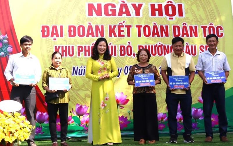 Lãnh đạo Thành ủy Long Khánh tặng quà chúc mừng khu phố