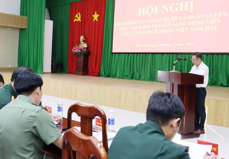(CTT- Đồng Nai) - Ngày 28-12, Hội đồng Nghĩa vụ quân sự (NVQS) TP.Biên Hòa tổ chức Hội nghị hiệp đồng giao nhận quân và huấn luyện diễn tập, kiểm tra sẵn sàng động viên lực lượng dự bị động viên năm 2024.